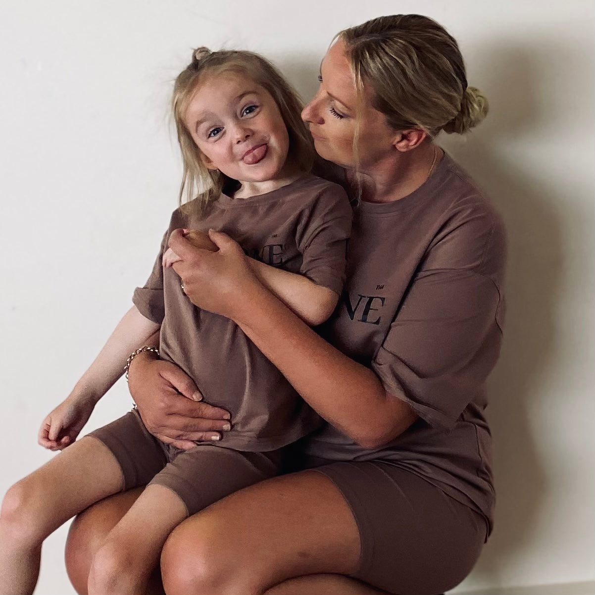 B2B BIKE SHORTS&TEE SET MINI PINK